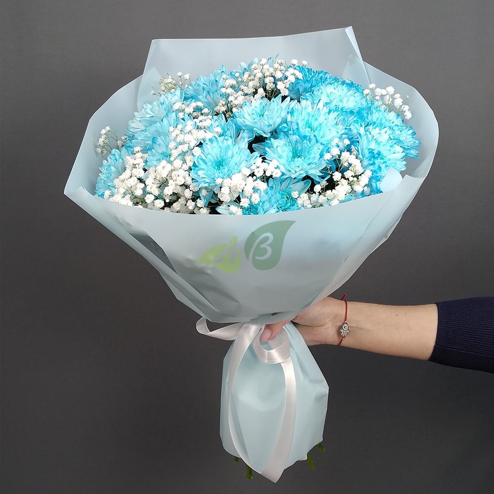 • Хризантема кустовая - 7 штук, цвет - голубой, длина стебля - 50 см;